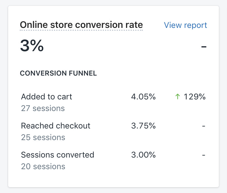 在Shopify分析仪表盘中查看您的在线商店转化率,以查看有多少访客将您的产品添加到购物车中。